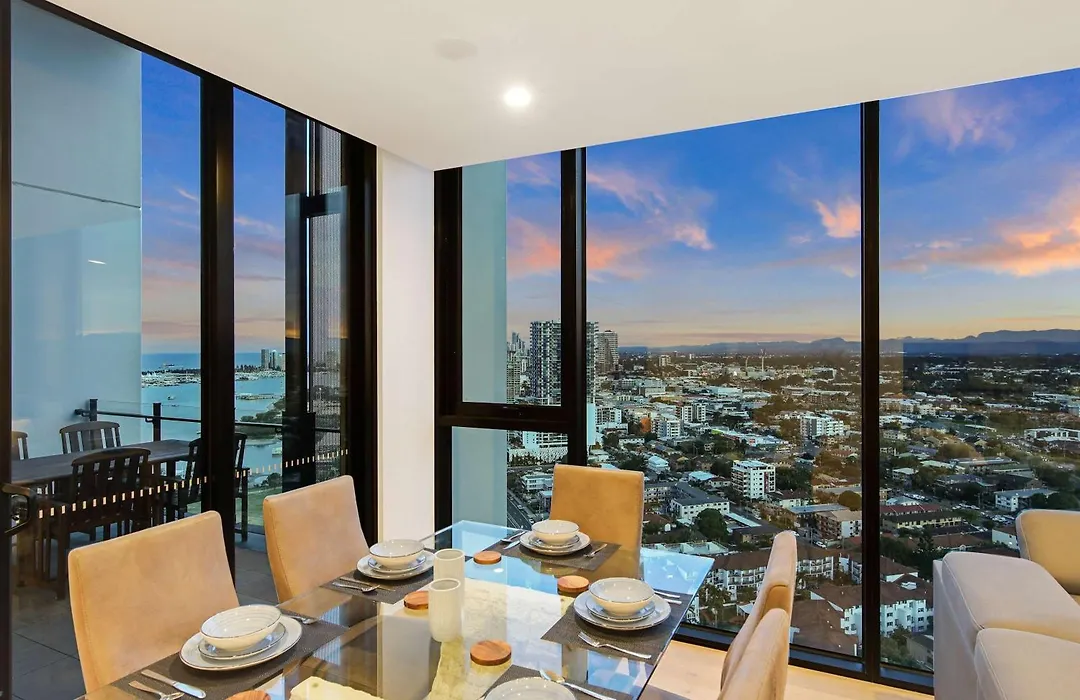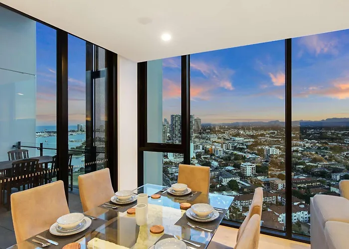 海辺の寝室2室のSkyline Showdown - Views, Games & Vibes ゴールドコーストアパートはビーチフロントに位置する場所で、Southport Bathing Pavilionから徒歩でたった7分です。 ビジネスやレジャーのお客様のニーズに合わせて、WiFiを提供しています。